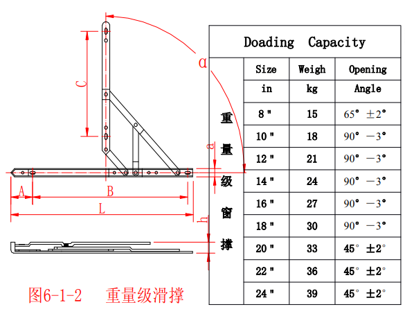 表 6-1 -3 重量級滑撐荷載能力參考表